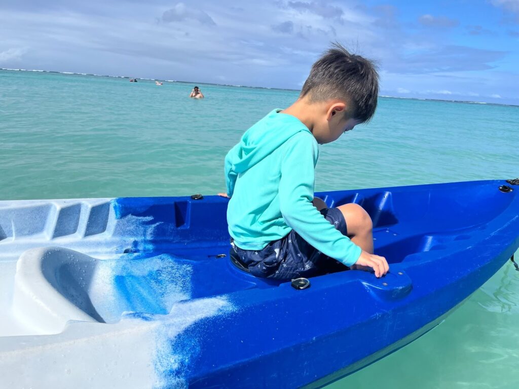 4歳、はじめての海外旅行でグアムへ。船への憧れが強く、ボートに乗せてもらって大喜びでした。