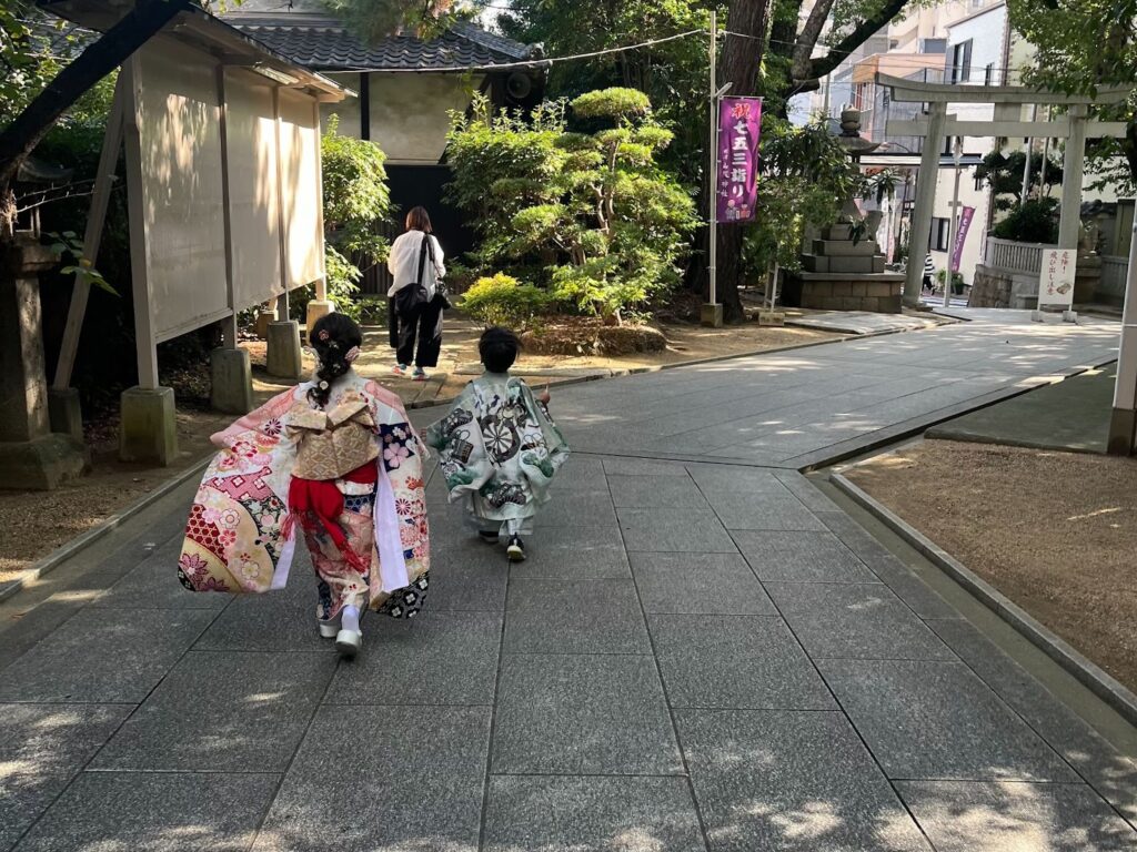 4歳、七五三詣り。祖父母におめでとうと言われ、照れていつも以上にお調子者になっていました。
